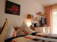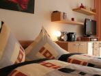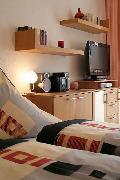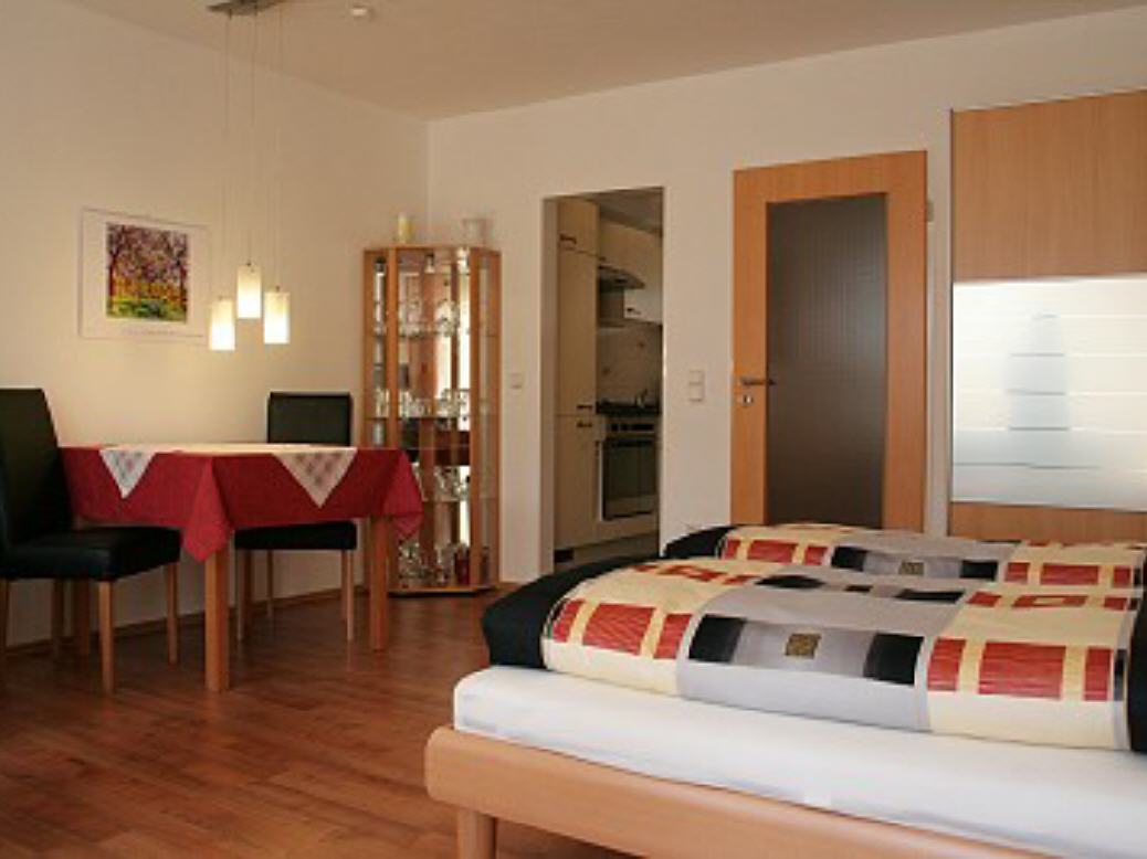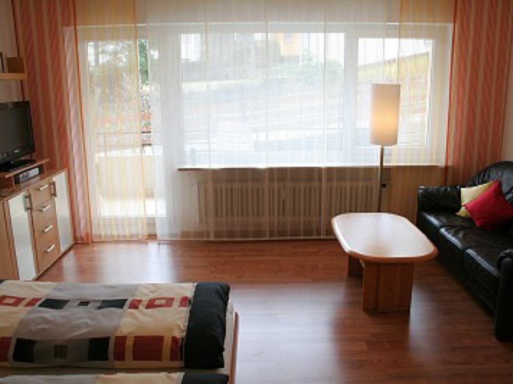 Unser Appartement befindet sich im Erdgeschoss eines 2-stöckigen Appartementhauses (mit insgesamt 12 Wohnungen, in ruhiger Waldrandlage (gegenüber von unserem Haus) im Ortsteil Ruhbühl. Mit seinen 37 Quadratmetern Wohnfläche bietet es Platz für 2 Personen. Das Appartement wurde völlig renoviert, sehr komfortabel und allergikerfreundlich eingerichtet. Es handelt sich um einen Wohn- / Schlafraum mit feststehenden Betten und hochwertigen Matratzen (jeweils Kopf- und Fußteile verstellbar) sowie einer Sitz- und einer Essecke. Die erstklassige Ausstattung unserer Nichtraucher-Wohnung ermöglicht Ihnen einen erholsamen Aufenthalt (auf dem Balkon kann natürlich geraucht werden). Außerdem gibt es eine separate, moderne und gut ausgestattete Einbauküche mit Mikrowelle sowie ein schönes Badezimmer mit Dusche / WC, sowie einen großen Balkon (mit Gartenmöbeln) zur Südseite. Das Appartement ist mit Internet (WLAN) ausgestattet sowie Sat-Fernseher (LCD-Flachbildschirm) sowie Stereoanlage und vielen Büchern.